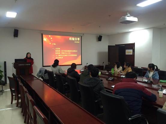 此次应吴老师盛情邀请,余碧燕参加会议,与同学们进行交流学习,分享了自己在党建工作中的思考以及如何将组织生活举办的丰富多彩、如何全面的调动支部同学的积极性、如何合理的分配支部成员的工作任务。她详细汇报了自己支部研一期间的建设工作,毫无保留的分享了一些先进的思想和制度,也全面的介绍了在申报“十佳”过程中举办的一些特色活动,很好的启发了大家在党建工作中的灵感,帮助大家拓宽工作的思路,与会同志都感触颇深。