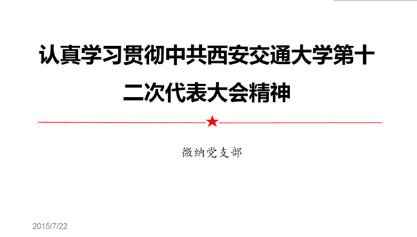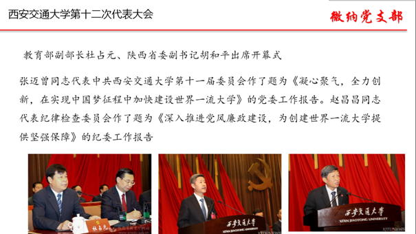320会议室召开会议,组织学习了中共西安交通大学第十二次代表大会会议精神。党支部组织委员王晓光主持会议,并就第十二次代表大会精神、“三严三实”专题学习及习近平总书记《与北京师范大学师生代表座谈时的讲话》等讨论话题做了主题报告。与会同志们积极讨论,深入交流彼此的观点。