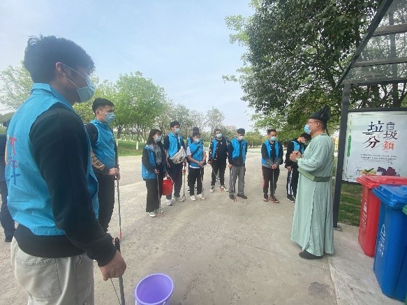 在工作人员的分头带领下,同学们兵分两路,在太液池周边“清四乱”,劝阻不文明行为。比如在绿草地上踩踏,嬉戏、小朋友在深水边捞鱼,玩水、行人乱扔垃圾,杂物等。最后同学们在C区垃圾分拣站进行垃圾集中清理,工作人员将垃圾分类的历史进行了详细及介绍,同学们也纷纷感谢工作人员对大明宫遗址的保护,才能让更多的市民见到“遗落人间池光艳,一汪碧水映蓝天”的太液池美景。
