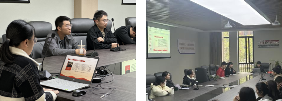 宣讲环节结束后,支部成员何佳莉和吴文翰分享了他们的心得。何佳莉被交大师生在国家建设中无畏艰辛、勇往直前的精神深深感动,尤其是在积极抗疫中展现出的责任感和使命感,同时也希望西迁精神在我们这一代能够继续传承与发扬。吴文翰强调,当代青年应将这种精神内化于心、外化于行,不论面对何种挑战,都要胸怀大局、勇于担当,将个人的成长与国家的发展紧密联系,为国家的繁荣昌盛贡献力量。大家一致认为,西迁精神不仅是一种精神财富,更是一种无形的力量,激励我们在新时代中继承和发扬先辈们的光辉传统。