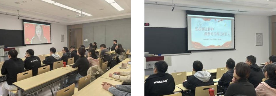 宣讲会开始前,支部成员集体观看了由西安交通大学和中央新闻纪录电影制片厂联合摄制的历史文献纪录片《向西向远方》。影片生动再现了自1956年交大内迁西安、扎根西部的奋斗历程,从先辈们的艰苦创业到交大在西北的不断发展壮大,这段历史让成员们深刻感受到西迁精神中的家国情怀和无私奉献精神。