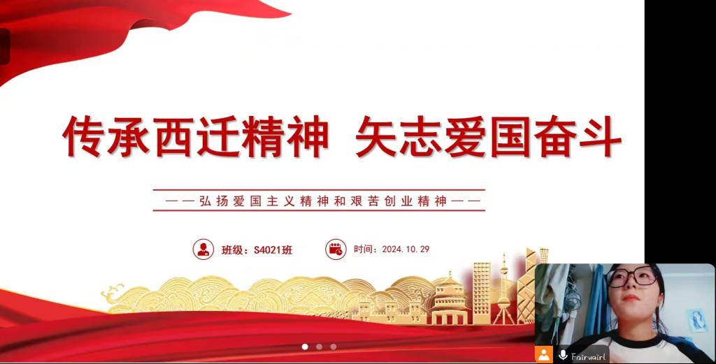 2024年10月29日晚上,S4021团支部开展了“初心启航。新程共筑”系列团日活动的第四场团日活动——“传承西迁精神,矢志爱国奋斗(线上版)”。