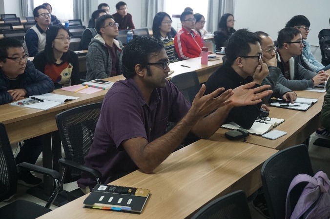 的研究状况做了简单介绍。围绕金属材料的高周疲劳和低周疲劳理论,Christopher Hutchinson开始了他的学术报告部分。Christopher Hutchinson教授在报告中综述了循环加载下各型号铝合金中析出相变化,通过对样品表面形貌及内部微观结构的分析,解释了这些差异的来源。这一结果对于未来抗疲劳铝合金的设计具有一定的指导意义。Christopher Hutchinson教授深厚的理论功底及深入浅出的讲解激发了在座老师和学生浓厚兴趣,报告结束以后,在座师生针对报告中的疑问进行了提问,Christopher Hutchinson教授细致的解答获得了在座师生的一致好评。