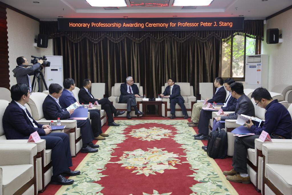Stang 院士对获得“名誉教授”学衔表示感谢,对西安交大百年建校史以及西迁历程表现出浓厚兴趣和高度赞赏,评价说:“交大人的勤劳勇敢和他刻苦努力、持之以恒的科研品格极为相似”。他建议交大应该更加重视对青年人才的培养,“未来是属于青年人的”,并表示愿意与相关老师密切合作,在科学项目上取得新的成果。