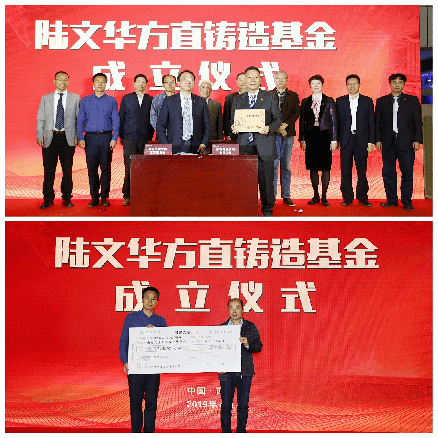 4月6日下午,西安交通大学陆文华方直铸造基金成立(以下简称基金)仪式举行。西安交通大学铸造专业陆文华教授及夫人胡云女士,西安交通大学副校长席光、王铁军,陕西方直铸造有限公司、沈阳铸造研究所有限公司、中国铸造协会、《铸造技术》杂志社、华中科技大学、武汉理工大学、西安理工大学等代表,陆文华教授之子陆维民及西安交通大学教育基金会,研工部,档案馆、博物馆,校友部的负责人,材料学科校友会和铸造研究所师生代表参加仪式。仪式由博彩注册送彩金网站