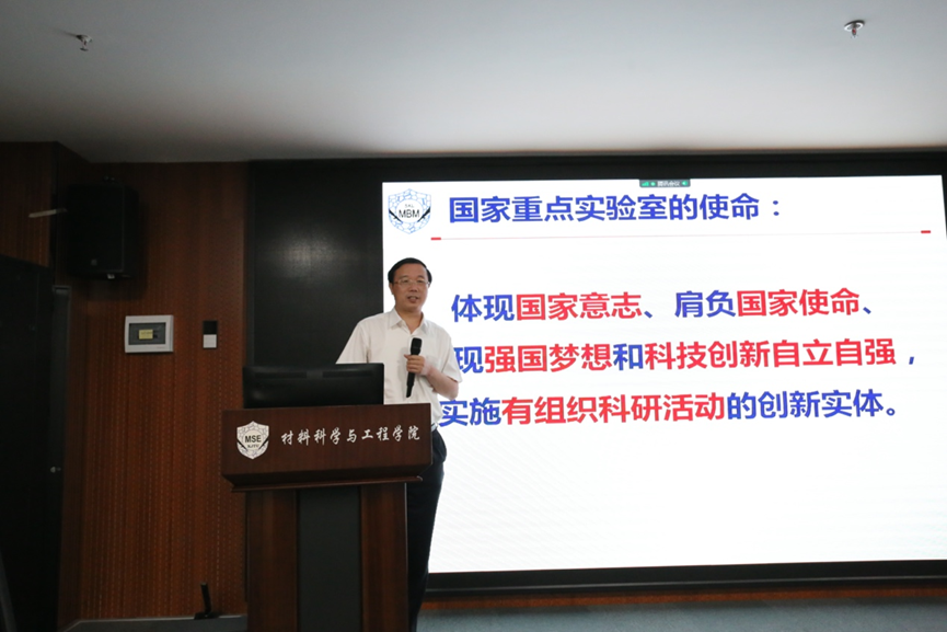 的基本情况。他强调研究生要以解决国家科技难题为目标,在浮躁的世界凝神聚气,夯实材料学科发展基础,为材料学科未来发展贡献力量。