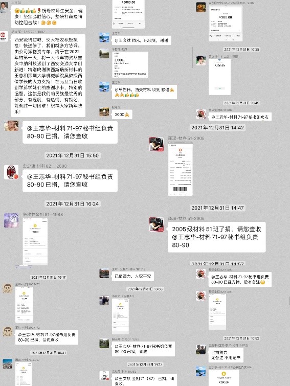 12月31日,材料学科校友会发出号召校友积极参加抗疫攻坚战的倡议书后,校友们积极响应,同心抗疫,3天捐赠善款5万元,该部分资金将全部用于支持注册送彩金