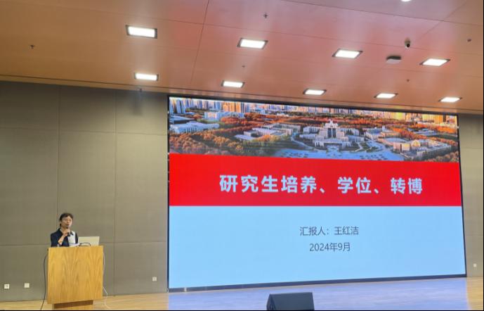 副院长王红洁介绍了研究生培养工作,针对研究生培养方案、学位申请条件和转博时间及条件等相关情况进行详细介绍,希望同学们更加了解研究生培养的相关流程与环节,合理规划研究生阶段的学习与科研。