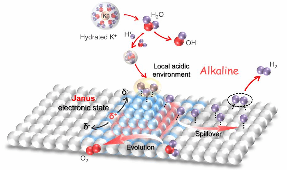 氢是迈向国家“双碳”目标的重要能源,发展高效稳定的电解水催化材料是实现规模制氢的关键。电解水反应包含阴极析氢(HER)与阳极析氧(OER)两个半反应,而研制HER/OER双功能全分解水电催化材料,在提升材料利用效率、构建防反接电解器件等方面具有重要意义。然而,HER与OER反应的得失电子性相反,将两者耦合实现双功能在理论与技术上都面临巨大挑战。针对上述关键难题,西安交通大学金属材料强度国家重点实验室的研究人员提出了金属位点电子态非平衡化的学术解决思路,在单金属位点上实现了得-失电子性的有效耦合,设计开发了多种高性能的HER/OER电解水负载型催化剂。