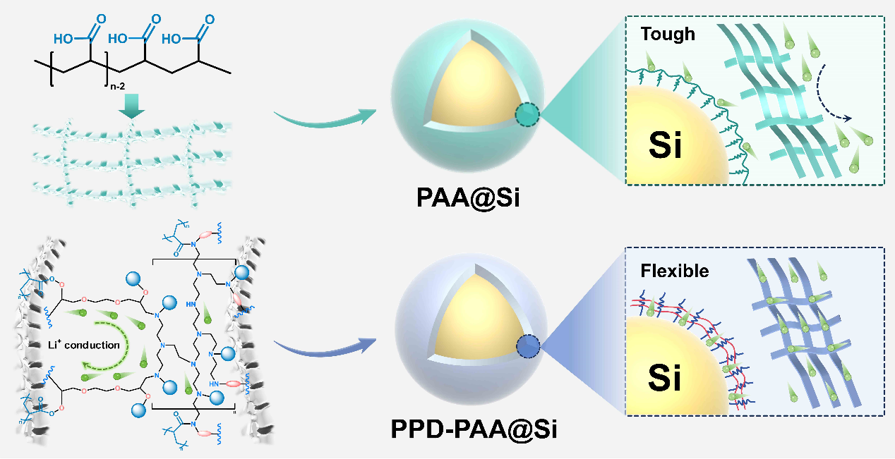 在全球能源科技革新的浪潮中,高比能电池的研发已成为国防军工及社会经济领域不可或缺的一环,能够为特种装备与新能源汽车提供更持久、更稳定的动力支持,对于强化武器装备作战能力、推动社会经济可持续发展具有重大战略意义。高比能电极材料作为提升电池能量密度的关键,其结构稳定性是储能材料领域追求的永恒主题。硅负极具有高比容优势(理论容量4200 mAh/g),有望超越传统体系,大幅提高电池能量密度(>500 Wh/kg),契合未来储能发展需求。然而,硅负极在电化学过程中物质交换引发结构畸变,导致服役寿命与高比能之间呈现出反向制约关系,严重制约了其规模应用。
