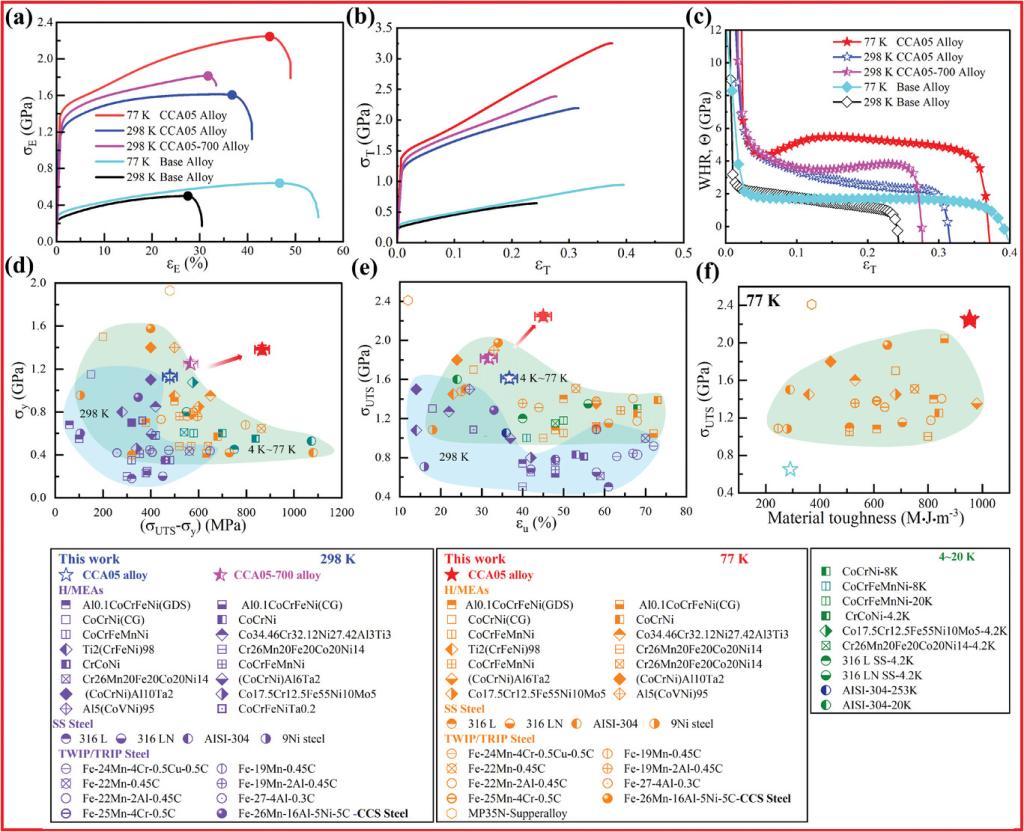 该研究成果以“A Complex Concentrated Alloy with Record-High Strength-Toughness at 77 K”(“77K下复杂浓缩合金创纪录的高强度和韧性”)为题在线发表于《Advanced Materials》(《先进材料》)上。注册送彩金-博彩注册送彩金网站