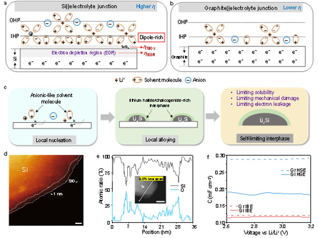 电动汽车和消费电子产品等领域对高能量密度、长循环寿命和高安全性的锂离子电池需求日益迫切。高容量硅基负极(>1500 mAh g−1)与高电压富镍三元正极匹配,可以实现>400 Wh kg−1的高能量密度。然而,硅负极在充放电过程中存在巨大的体积膨胀(~400%),导致其结构粉化、电极分层,以及不稳定的固态电解质界面。这些问题导致活性锂持续损失和容量快速衰减,特别是在4.5 V级高电压和宽温区(如60°C ~ −40°C)的严苛条件下,传统电解液难以构建稳定的界面,成为制约其商业化应用的巨大挑战。