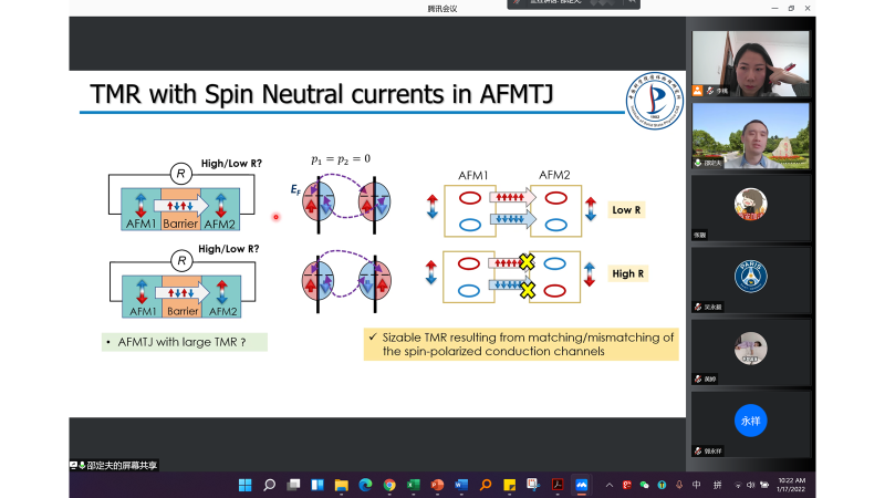 ,在线上进行了题为《Antiferroic tunnel junctions》的学术报告,介绍了铁电、铁磁材料在新一代芯片材料中的应用前景以及在反铁磁/反铁电器件领域的研究成果。本次讲座由李桃教授主持,博彩注册送彩金网站
