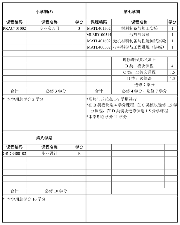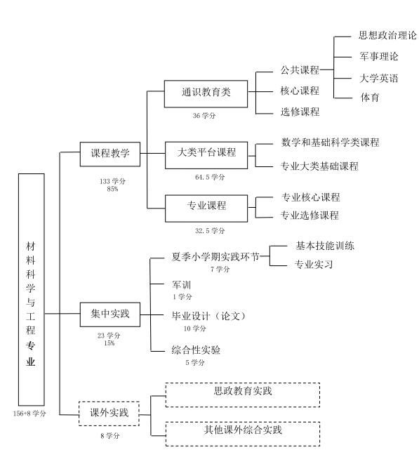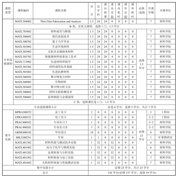 专业实习:分别在第二学年和第三学年的小学期进行,其中第二学年小学期为分散实习,第三学年小学期为集中实习,通过现场参观和具体的实践活动,了解和熟悉材料生产过程,培养学生理论联系实际的能力。